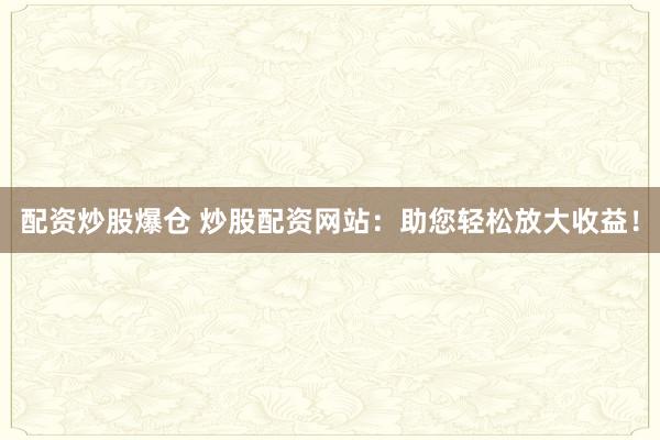 在瞬息万变的金融市场中,股票投资一直是许多人实现财富增长的重要途径。然而,高收益往往伴随着高风险,资金不足也常常成为投资者展翅高飞的阻碍。这时,炒股配资网站应运而生,为投资者提供了一种全新的解决方案,帮助他们轻松放大收益配资炒股爆仓,实现财富梦想。